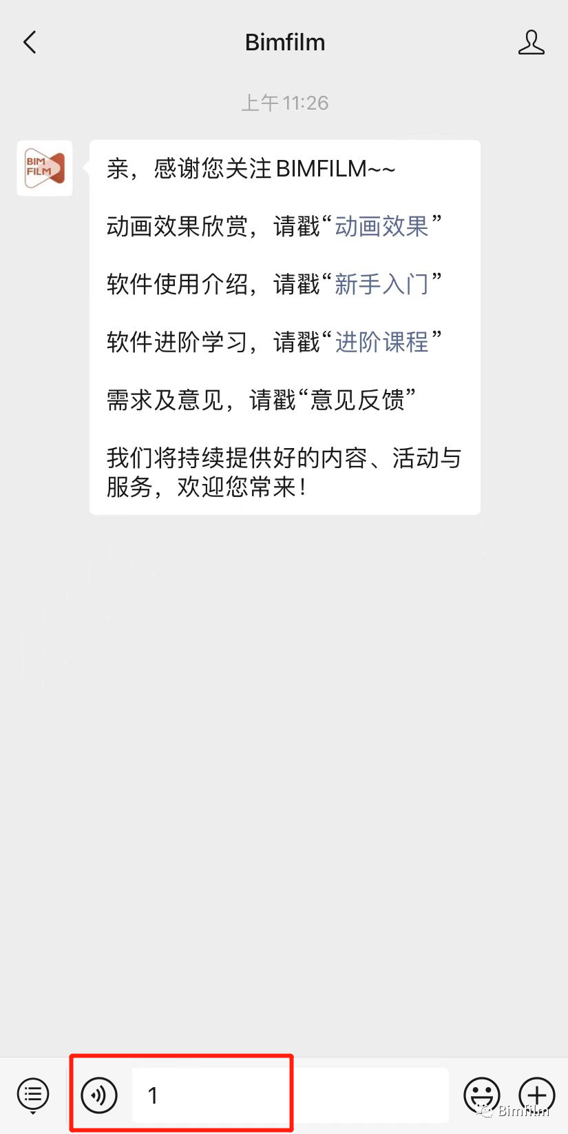 第二步:在公眾號底部菜單欄回復數(shù)字:1。