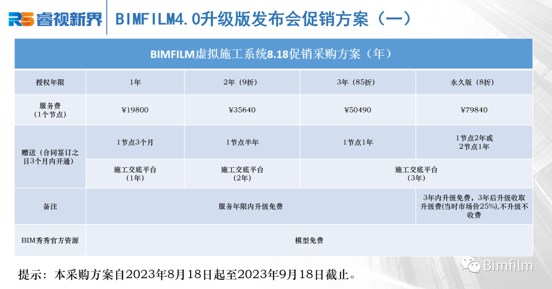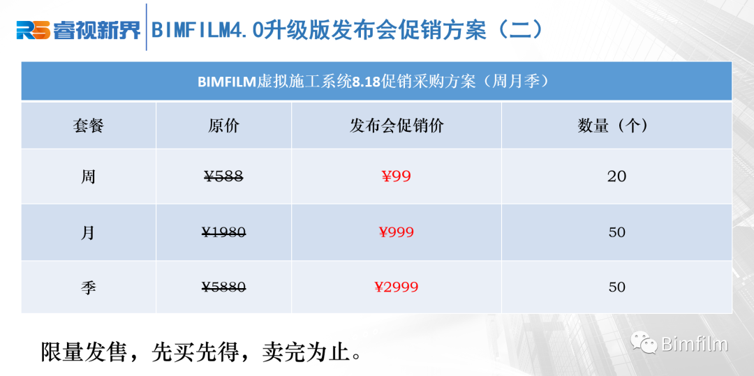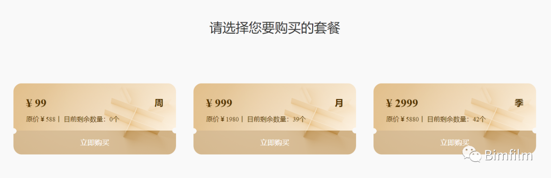針對(duì)于本次發(fā)布會(huì),不論是年的購(gòu)買還是周月季的購(gòu)買,我們都給出了BIMFILM史上最大的折扣優(yōu)惠。