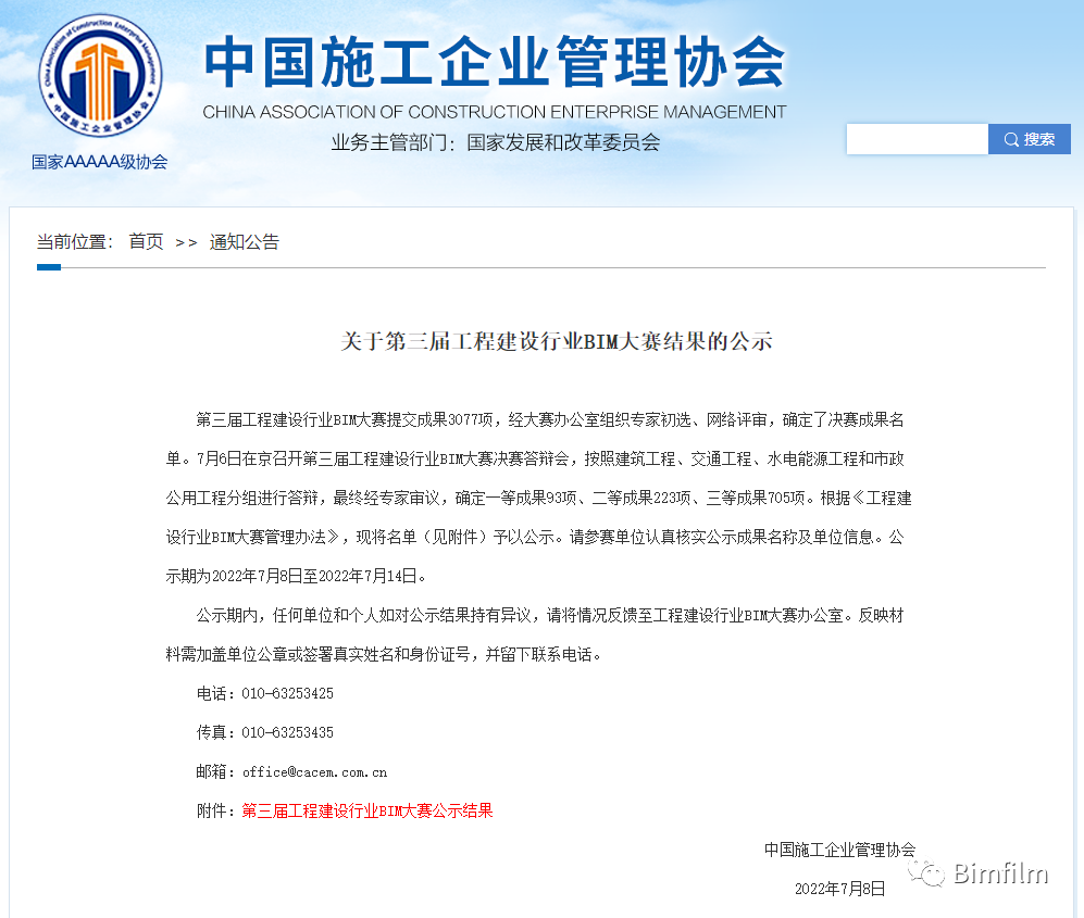 7月8日,第三屆工程建設(shè)行業(yè)BIM大賽獲獎(jiǎng)名單公布。