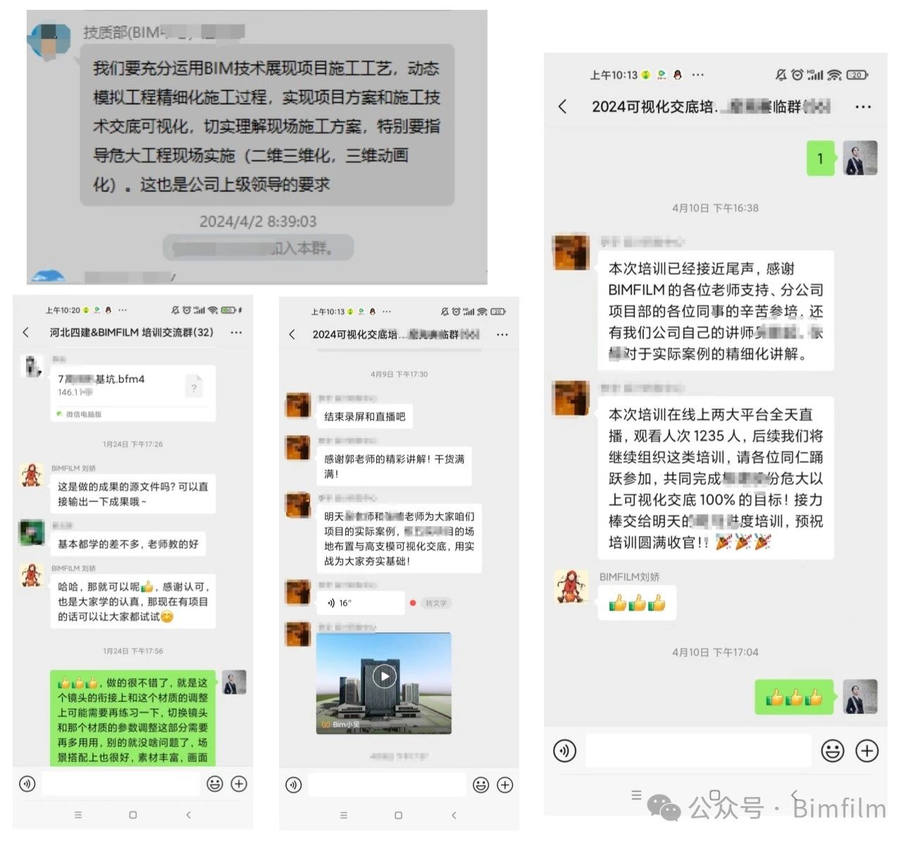 最終通過持續(xù)的培訓(xùn)和輔導(dǎo),都極大程度的提升了大家操作BIMFILM軟件的技能,增強了大家對BIM可視化的理解和認可,從而間接的推動了我們各大企業(yè)/院校單位在BIM領(lǐng)域的發(fā)展。